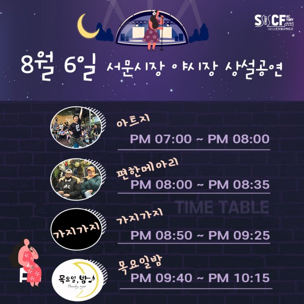 [행사안내] 서문야시장 상설무대 공연안내 8월6일 페이지 정보 작성자 행사관리자 작성일20-08-06 14:03 조회1,339회 댓글0건 관련링크 이전글 다음글 목록 본문 8월6일 오늘의 일정입니다. 댓글목록 등록된 댓글이 없습니다. 이전글 다음글 목록