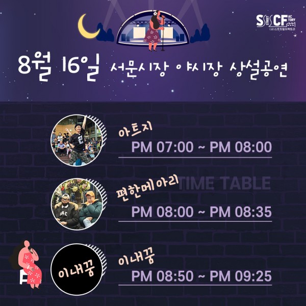 [행사안내] 서문야시장 상설무대 공연안내 8월16일 페이지 정보 작성자 행사관리자 작성일20-08-16 12:18 조회1,237회 댓글0건 관련링크 이전글 다음글 목록 본문 8월 16일 오늘의 일정입니다. 댓글목록 등록된 댓글이 없습니다. 이전글 다음글 목록