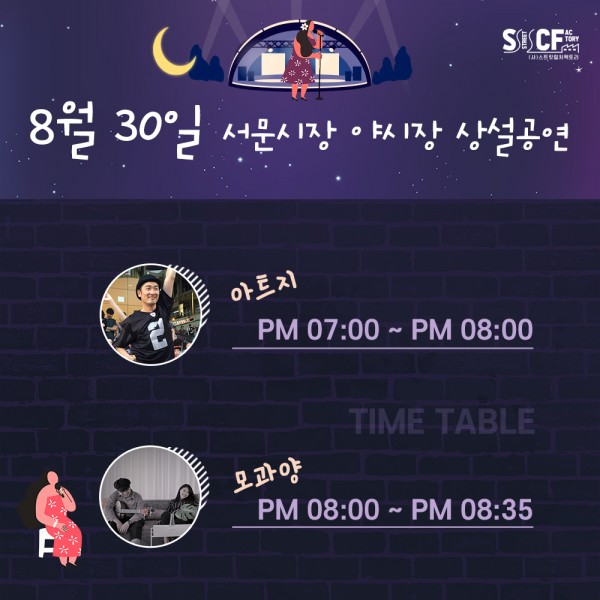 [행사안내] 서문야시장 상설무대 공연안내 8월30일 페이지 정보 작성자 행사관리자 작성일20-08-30 11:21 조회1,249회 댓글0건 관련링크 이전글 다음글 목록 본문 8월 30일 오늘의 일정입니다. 댓글목록 등록된 댓글이 없습니다. 이전글 다음글 목록