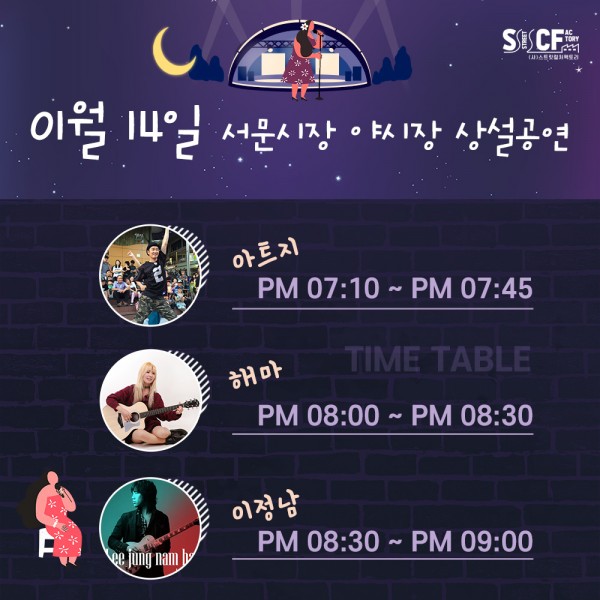 [행사안내] 서문야시장 상설무대 공연안내 01월 14일 페이지 정보 작성자 행사관리자 작성일22-01-14 17:43 조회853회 댓글0건 관련링크 이전글 다음글 목록 본문 1월 14일 오늘의 일정 입니다. 댓글목록 등록된 댓글이 없습니다. 이전글 다음글 목록
