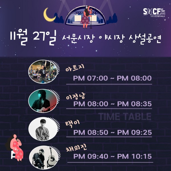 [행사안내] 서문야시장 상설무대 공연안내 11월 27일 페이지 정보 작성자 행사관리자 작성일21-11-27 18:07 조회852회 댓글0건 관련링크 이전글 다음글 목록 본문 11월 27일 오늘의 일정 입니다. 댓글목록 등록된 댓글이 없습니다. 이전글 다음글 목록