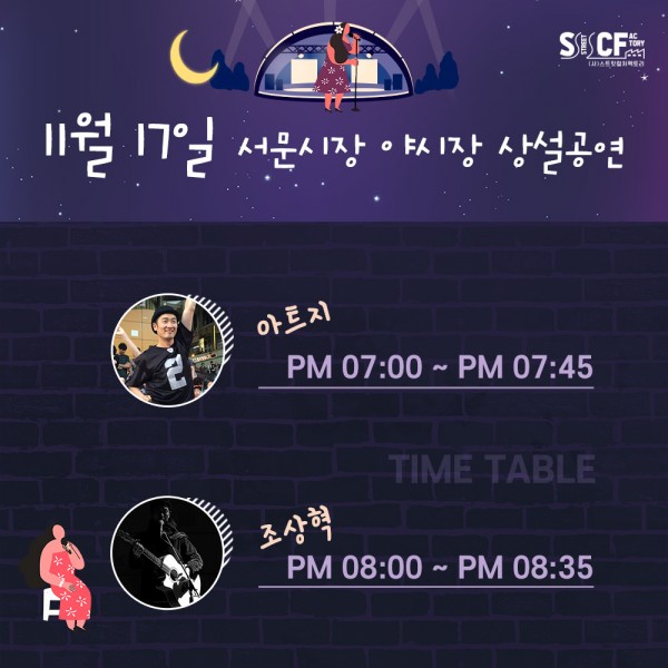 [행사안내] 서문야시장 상설무대 공연안내 11월 17일 페이지 정보 작성자 행사관리자 작성일21-11-17 11:19 조회863회 댓글0건 관련링크 이전글 다음글 목록 본문 11월 17일 오늘의 일정 입니다. 댓글목록 등록된 댓글이 없습니다. 이전글 다음글 목록