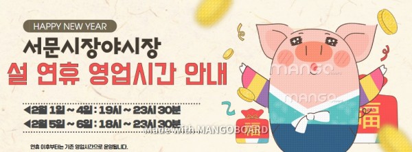 [공지사항]설연휴 영업시간 안내 페이지 정보 작성자 마스터 작성일19-01-28 15:42 조회6,409회 댓글0건 관련링크 이전글 다음글 목록 본문 설연휴기간 서문시장야시장은 정상운영하며, 영업시간만 위와같이 일부 조정되는점 참고부탁드립니다. 댓글목록 등록된 댓글이 없습니다. 이전글 다음글 목록